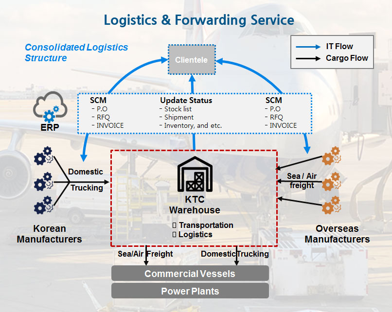 | - | K Tech Corporation¡¯s logistics service includes warehousing and freight forwarding of items sourced not only from Korean manufacturers but also from other foreign manufacturers to commercial vessels and power plants |
